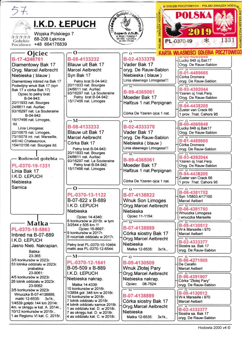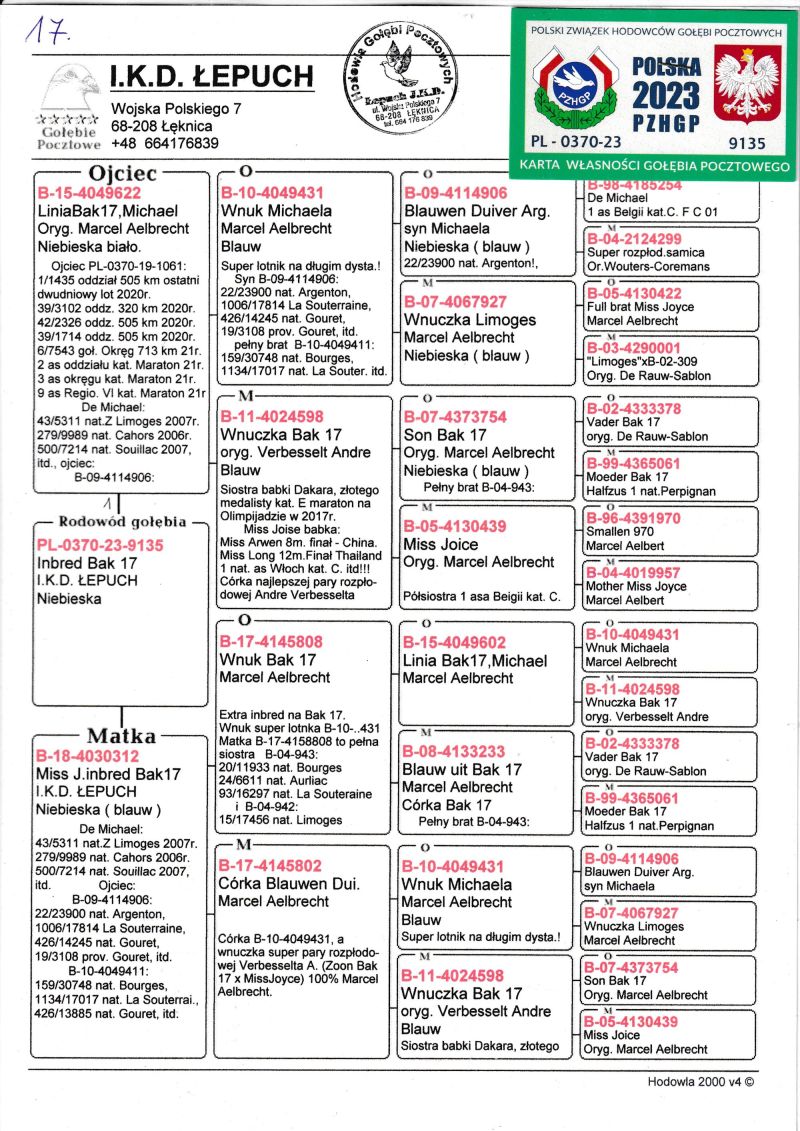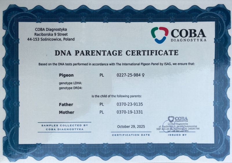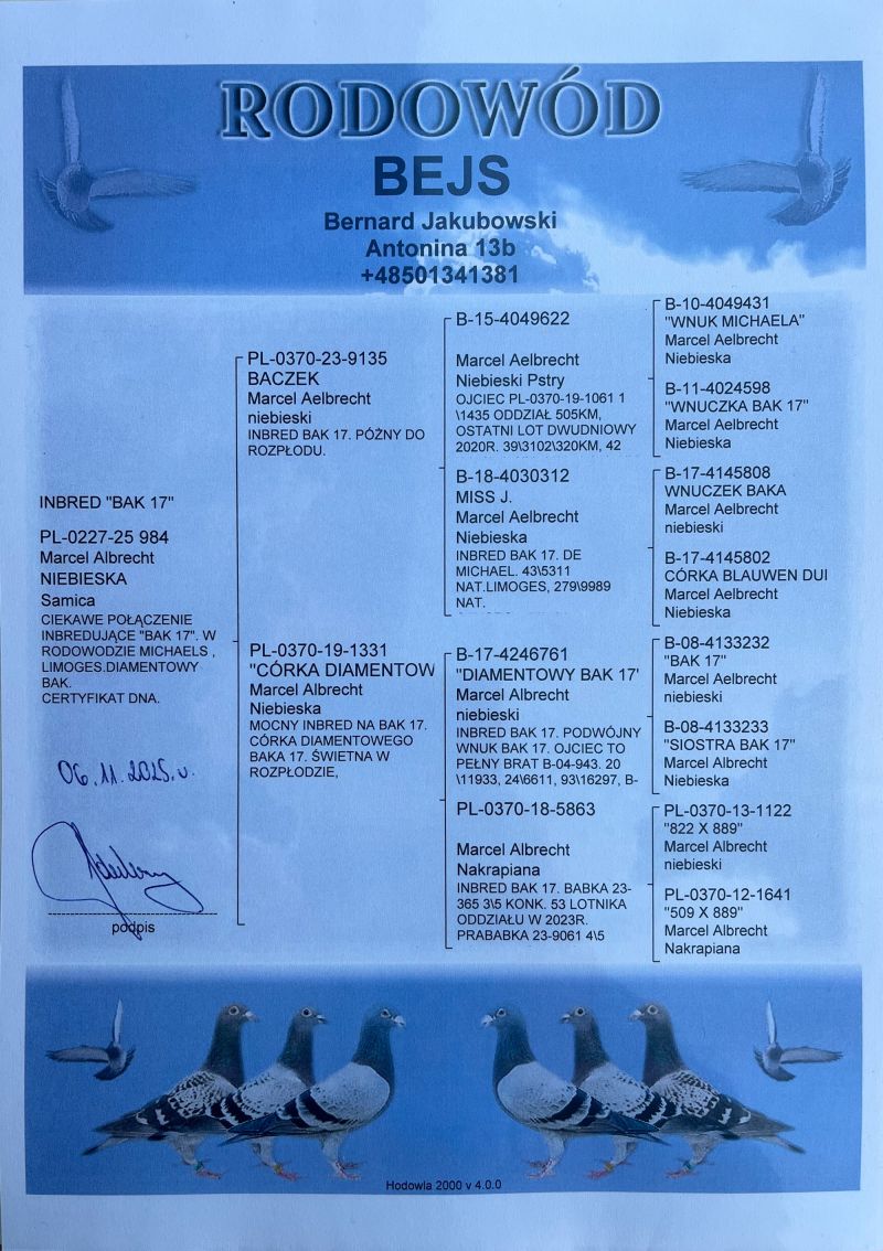 PL-0227-25-984 inbred BAK 17 Marcel Aelbrecht - certyfikat DNA