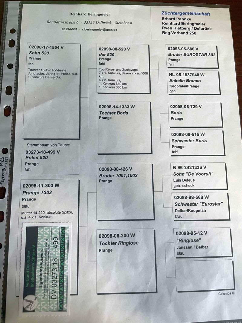 Oryginalny gołąb z hodowli Reinhard Beringmeier Szczegóły pochodzenia w rodowodzie. Gołębie po kuracjach, przygotowane do lęgów. Więcej informacji pod numerem telefonu 782 740 221 Wysyłka po uzgodnieniu z prywatnym kurierem, możliwy odbiór na wystawie, ewentualnie odbiór osobisty.