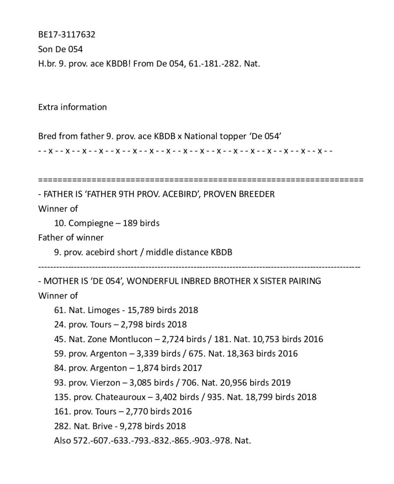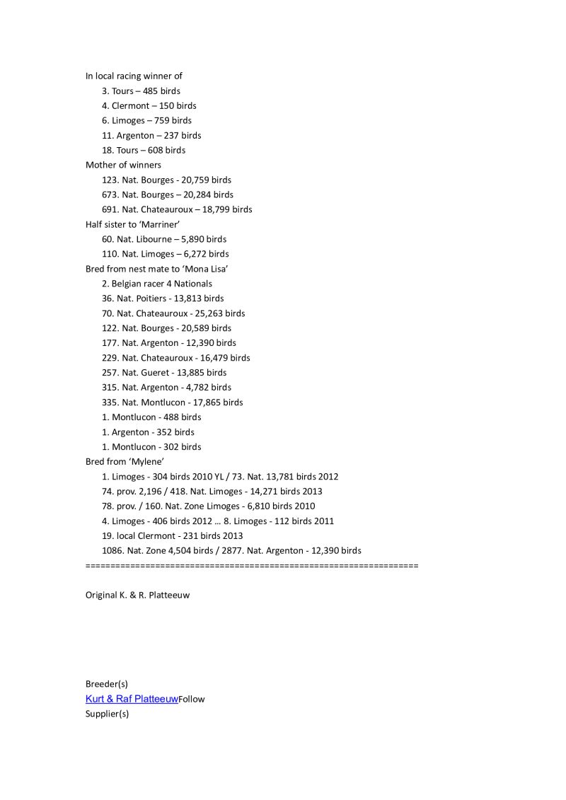 BE-17-3117632 - oryg. Platteeuw Pigeons WYPRZEDAŻ