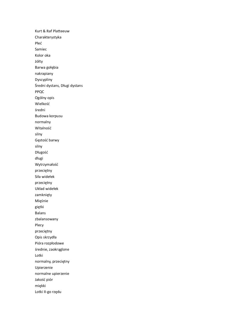 Płeć: samiec Hodowca - rasa: oryg. Platteeuw Pigeons Zakończenie: 3.01.2026 godz. 19:18
