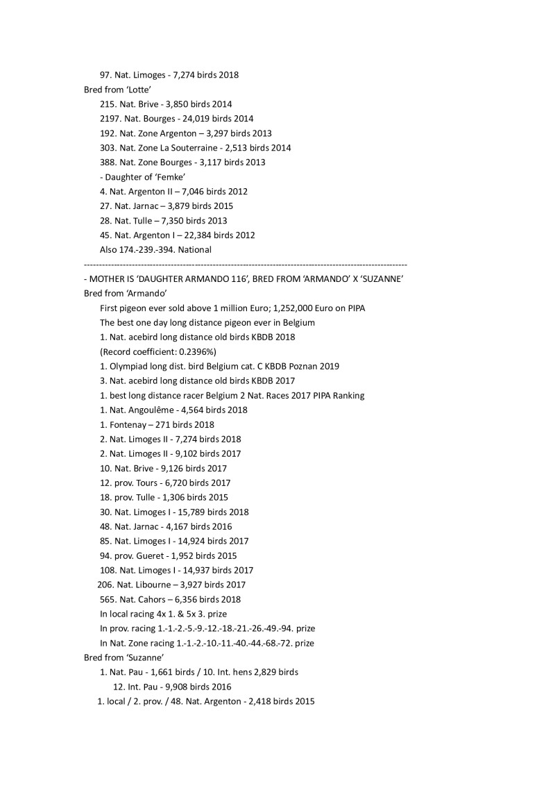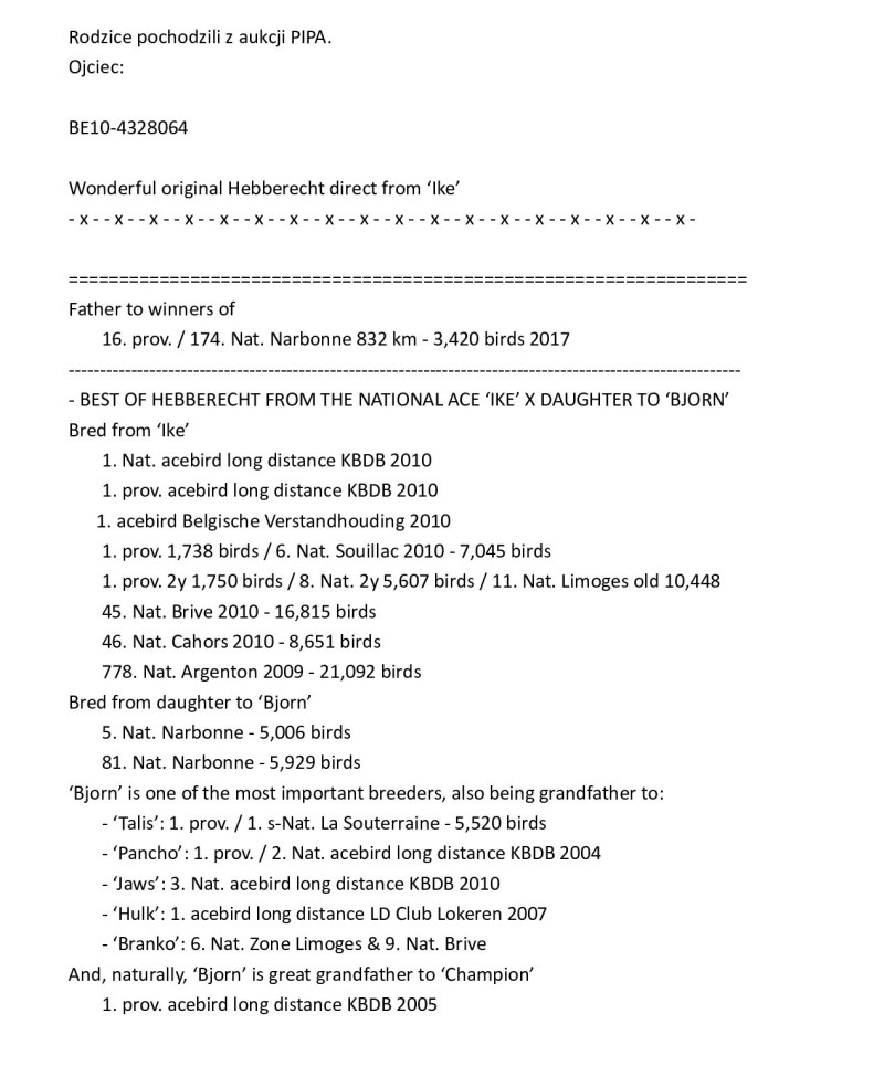 Musimy się przeprowadzić, więc wyprzedajemy wszystkie gołębie hodowlane. Bardzo dobra cena. Świetna okazja Oryginalny gołąb z hodowli Dr Liu Szczegóły pochodzenia w rodowodzie. UWAGA DOSTĘPNY ODBIÓR TYLKO NA WYSTAWIE W KATOWICACH SOBOTA 10 STYCZNIA BEZPŁATNY KONTAKT +370 609 803 308 proszę tylko sms lub messenger Jintao Liu email: Gedymino49@gmail.com