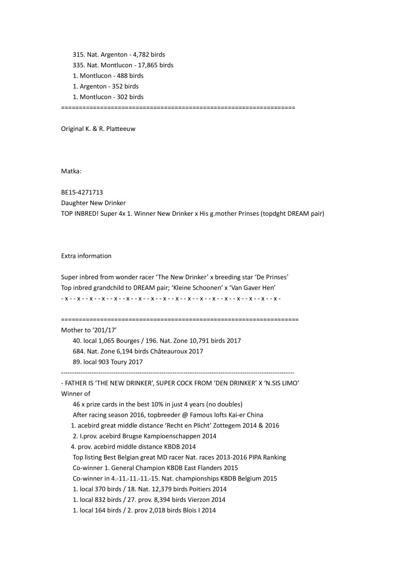 LTU-2019(21)-4344 - 2/5 konk. Platteeuw Pigeons - Tom van Gaver WYPRZEDAŻ