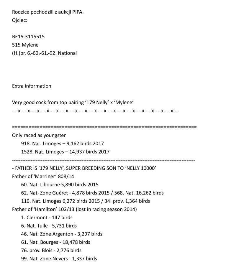 Musimy się przeprowadzić, więc wyprzedajemy wszystkie gołębie hodowlane. Bardzo dobra cena. Świetna okazja Oryginalny gołąb z hodowli Dr Liu Szczegóły pochodzenia w rodowodzie. UWAGA DOSTĘPNY ODBIÓR TYLKO NA WYSTAWIE W KATOWICACH SOBOTA 10 STYCZNIA BEZPŁATNY KONTAKT +370 609 803 308 proszę tylko sms lub messenger Jintao Liu email: Gedymino49@gmail.com