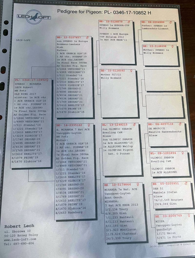 Oryginalny gołąb z hodowli Roberta Lecha Szczegóły pochodzenia w rodowodzie. Gołębie po kuracjach, przygotowane do lęgów. Więcej informacji pod numerem telefonu 782 740 221 Wysyłka po uzgodnieniu z prywatnym kurierem, możliwy odbiór na wystawie, ewentualnie odbiór osobisty.