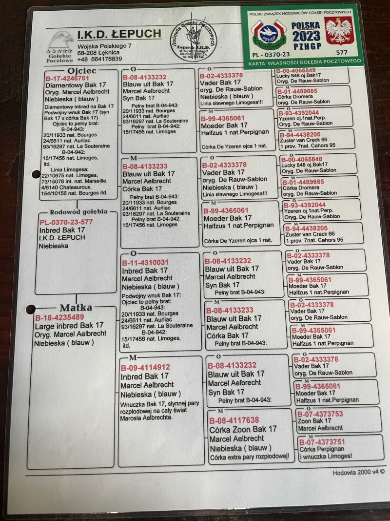 PL-0370-23-577 - oryg. I.K.D Łepuch - 100% Marcel Aelbrecht - Syn "Diamentowy Bak 17"
