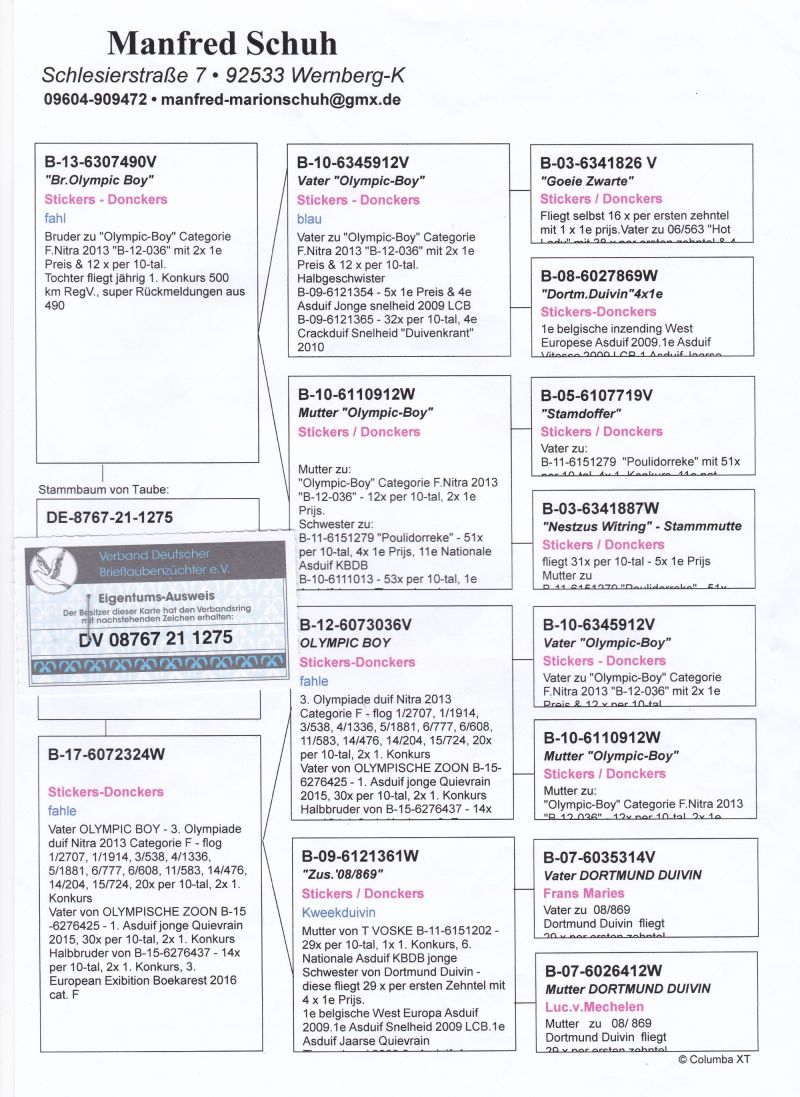 DV-08767-21-1275 ** TOP ** bart OLYMPIC BOY x CÓRKA OLIMPIC BOY - 3. gołąb w kat. F Olimpiada Nitra 2013, Manfred Schuh