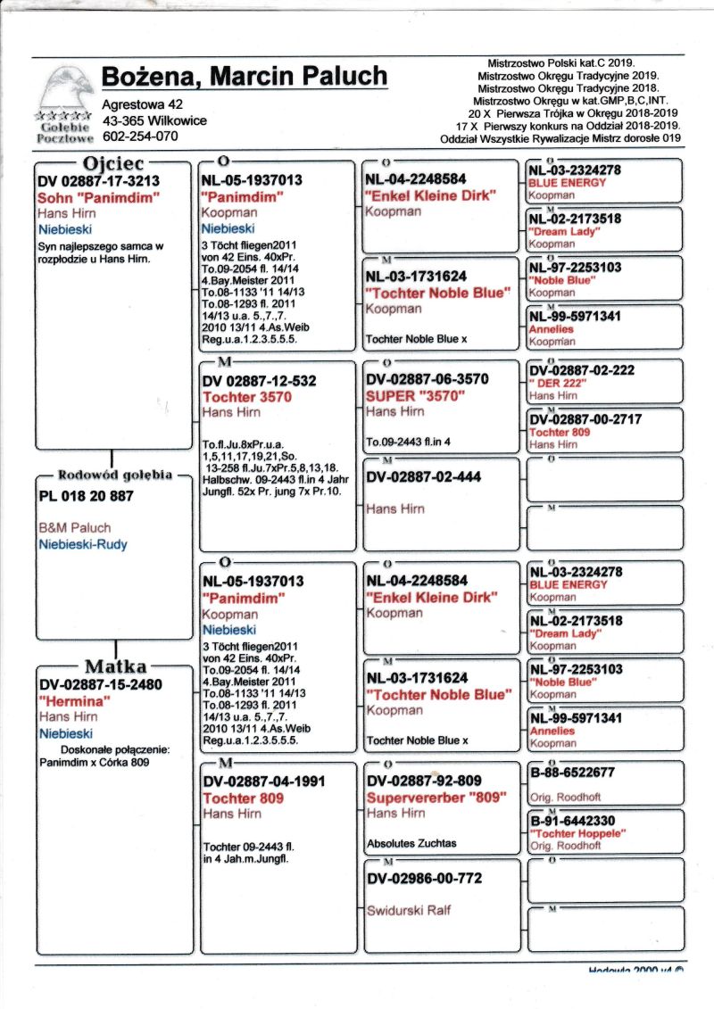Oryginalny gołąb z hodowli . Więcej informacji w rodowodzie oraz pod numerem telefonu: 888 664 692