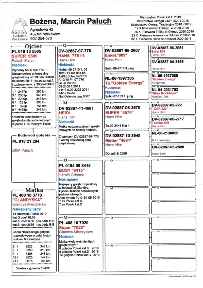 Oryginalny gołąb z hodowli Bożena, Marcin Paluch. Więcej informacji w rodowodzie oraz pod numerem telefonu: 888 664 692