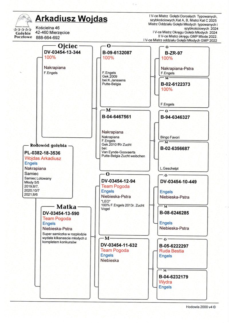 Oryginalny gołąb z hodowli - Wojdas Arkadiusz. Więcej informacji w rodowodzie oraz pod numerem telefonu: 888 664 692
