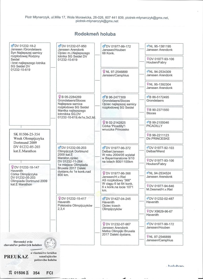Havenith ,gołąb dalekodystansowy.Wnuk (wnuczka) najlepszej samicy rozpłodowej SG Seidel BE 05-2284269 i Olimpijczyka Dortmund 2009 kat.E Maraton DV 01232-05-205.Rodzina Seidel posiada siedmiu Olimpijczyków w kategorii daleki dystans, m.in. DV 01232-15-306 Olimpijka z Oradea 2022, pierwszy gołąb niemiec i 17 świata. Gołąbki zaszczepione msv i odrobaczone. Transport gołębi kurierem po wcześniejszym uzgodnieniu,odbiór osobisty albo w Niedzielę na wystawie w Katowicach.