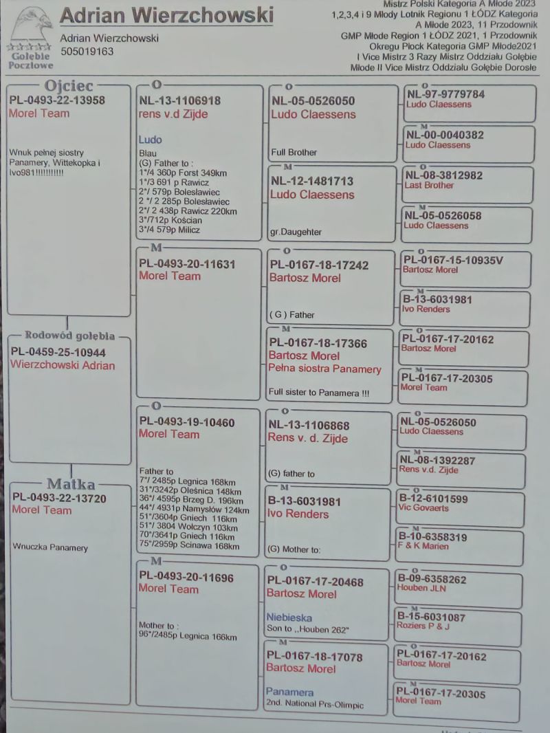 Płeć: młody gołąb Hodowca - rasa: Wierzchowski Adrian Zakończenie: 5.01.2026 godz. 18:06