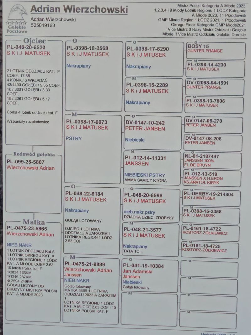 Płeć: młody gołąb Hodowca - rasa: Wierzchowski Adrian Zakończenie: 5.01.2026 godz. 18:10