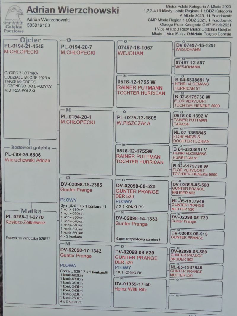 Płeć: młody gołąb Hodowca - rasa: Wierzchowski Adrian Zakończenie: 5.01.2026 godz. 18:14