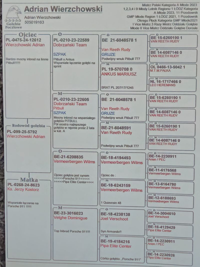 Płeć: młody gołąb Hodowca - rasa: Wierzchowski Adrian Zakończenie: 5.01.2026 godz. 18:16