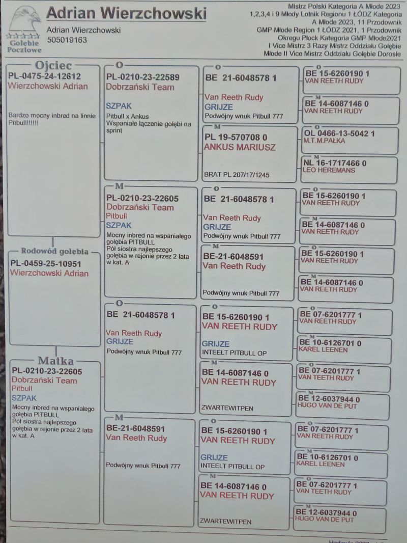 Płeć: młody gołąb Hodowca - rasa: Wierzchowski Adrian Zakończenie: 5.01.2026 godz. 18:18