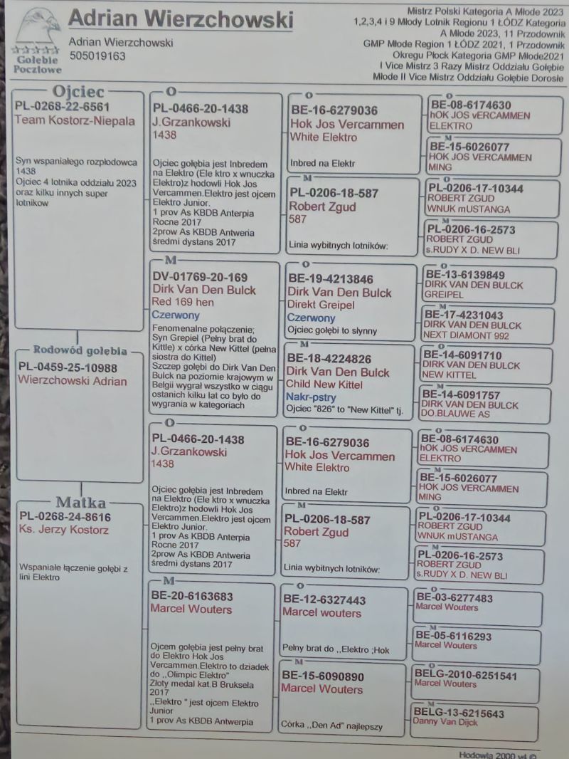 Płeć: młody gołąb Hodowca - rasa: Wierzchowski Adrian Zakończenie: 5.01.2026 godz. 18:22