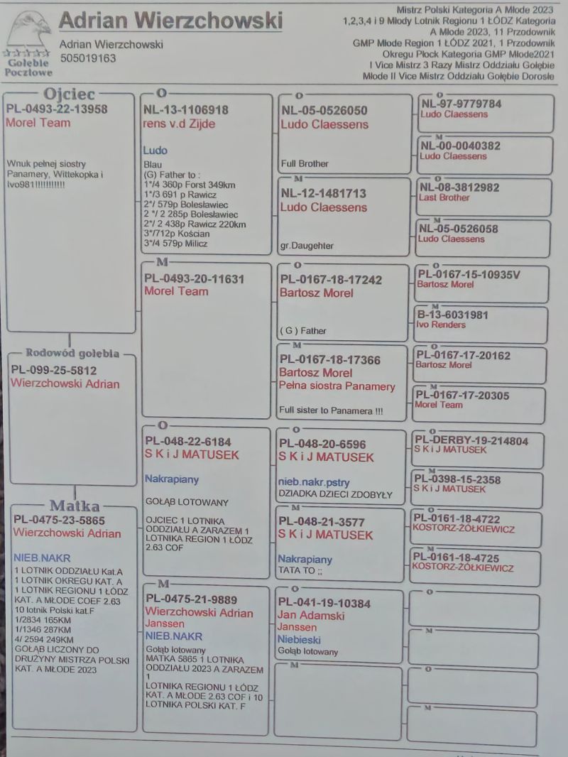 Płeć: młody gołąb Hodowca - rasa: Wierzchowski Adrian Zakończenie: 5.01.2026 godz. 18:26