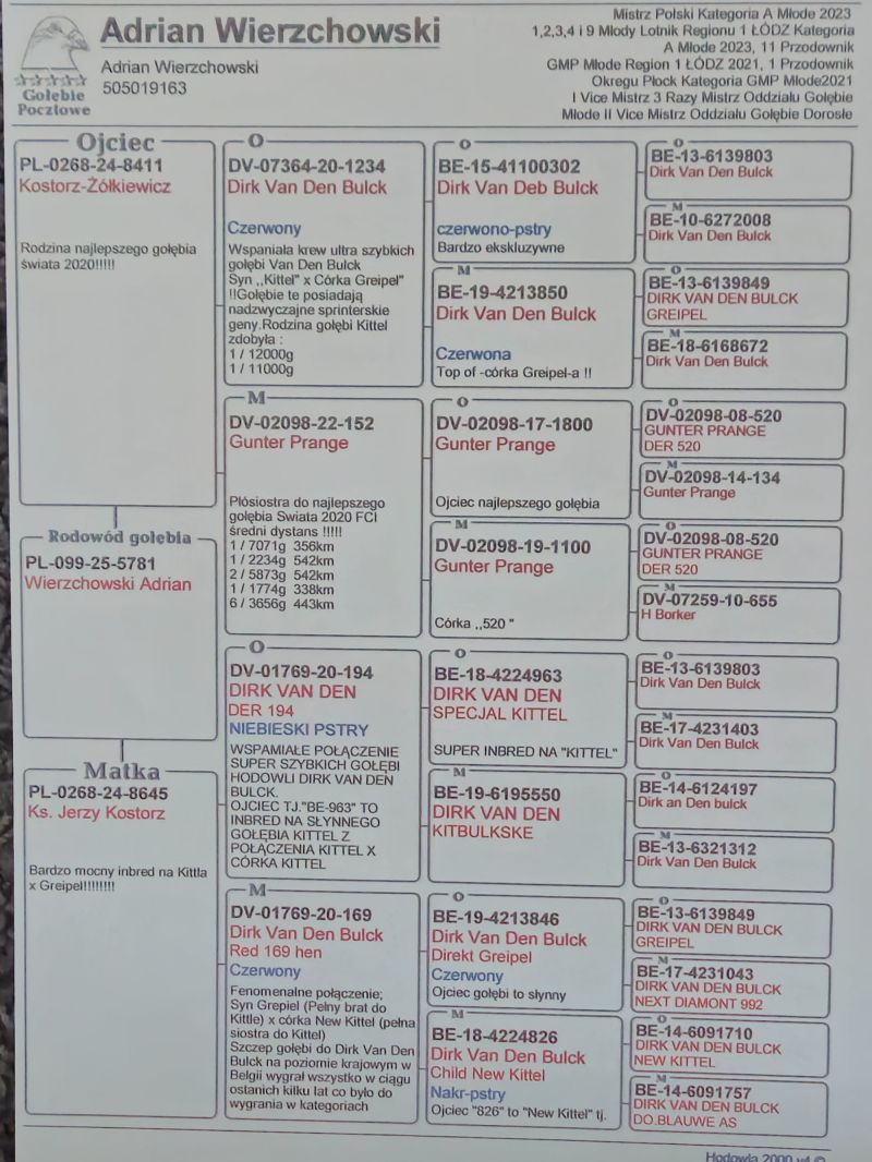 Płeć: młody gołąb Hodowca - rasa: Wierzchowski Adrian Zakończenie: 5.01.2026 godz. 18:28