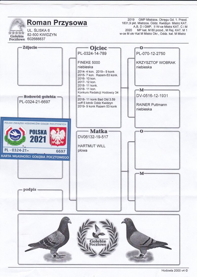 PL-0324-21-6697 *** oryg. Roman Przysowa, linia FIENEKE 5000, ROTE ASS, HURRICAN 51 i "864" ***