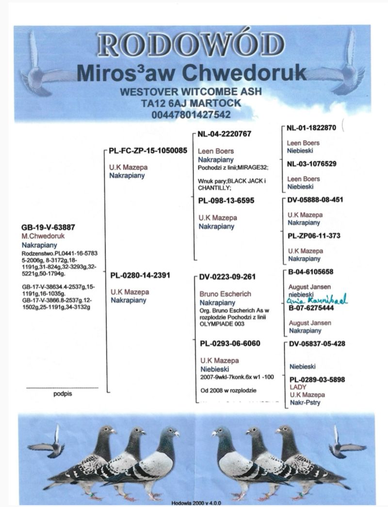 Oryginalny gołąb z hodowli Mirosława Chwedoruka. Szczegóły pochodzenia w rodowodzie. Więcej informacji pod nr tel.: 728 218 882 *Możliwość wysyłki