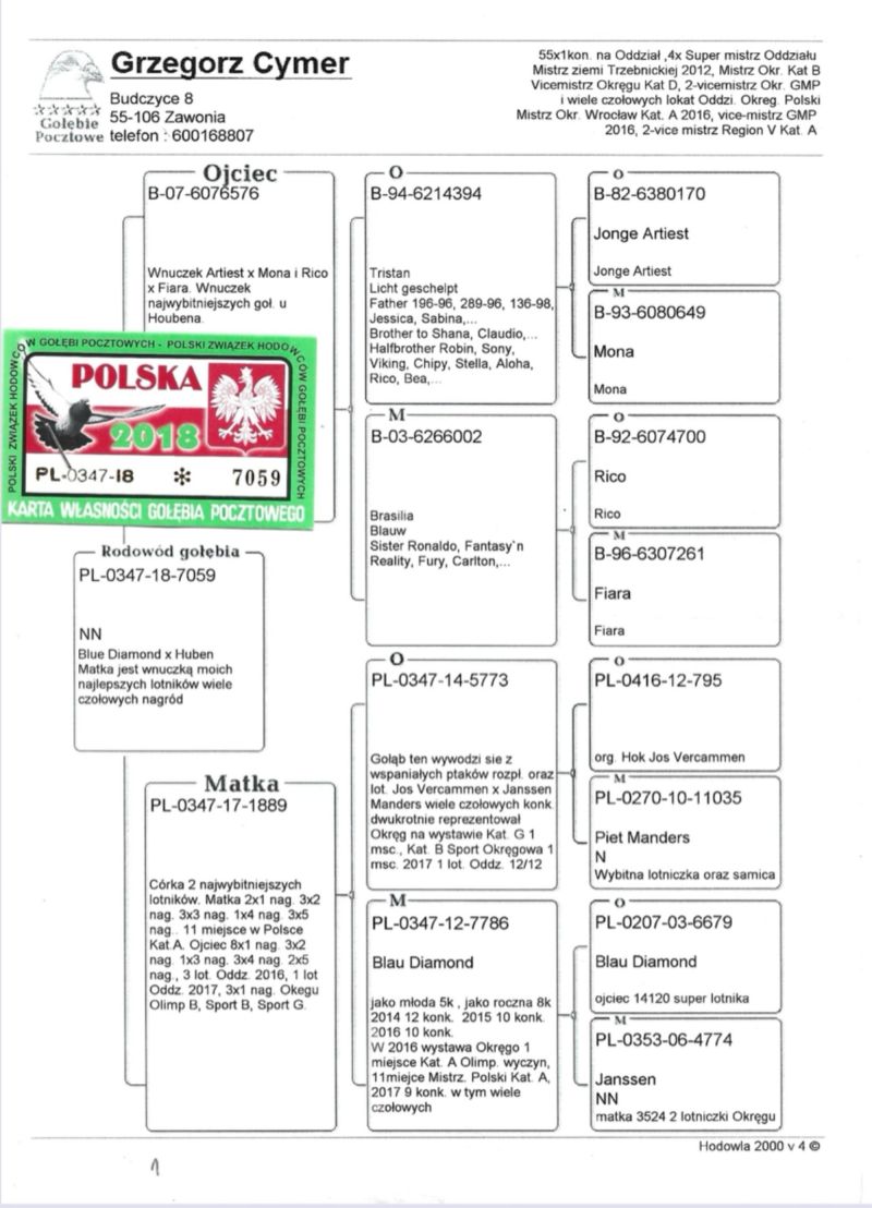 Oryginalny gołąb z hodowli Grzegorza Cymera. Szczegóły pochodzenia w rodowodzie. Więcej informacji pod nr tel.: 728 218 882 *Możliwość wysyłki