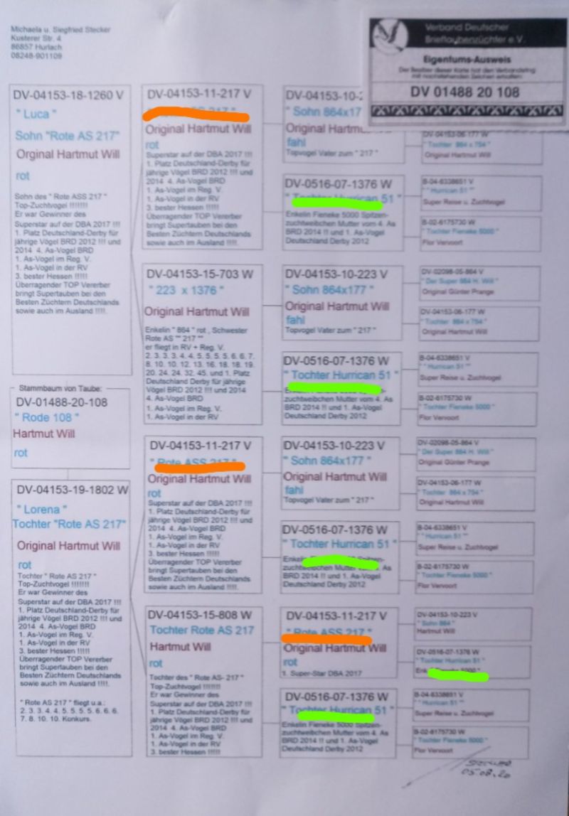 DV-01488-20-108 oryg.Stecker Siegfried Inbred 217 i 1376 córka Hurican 51