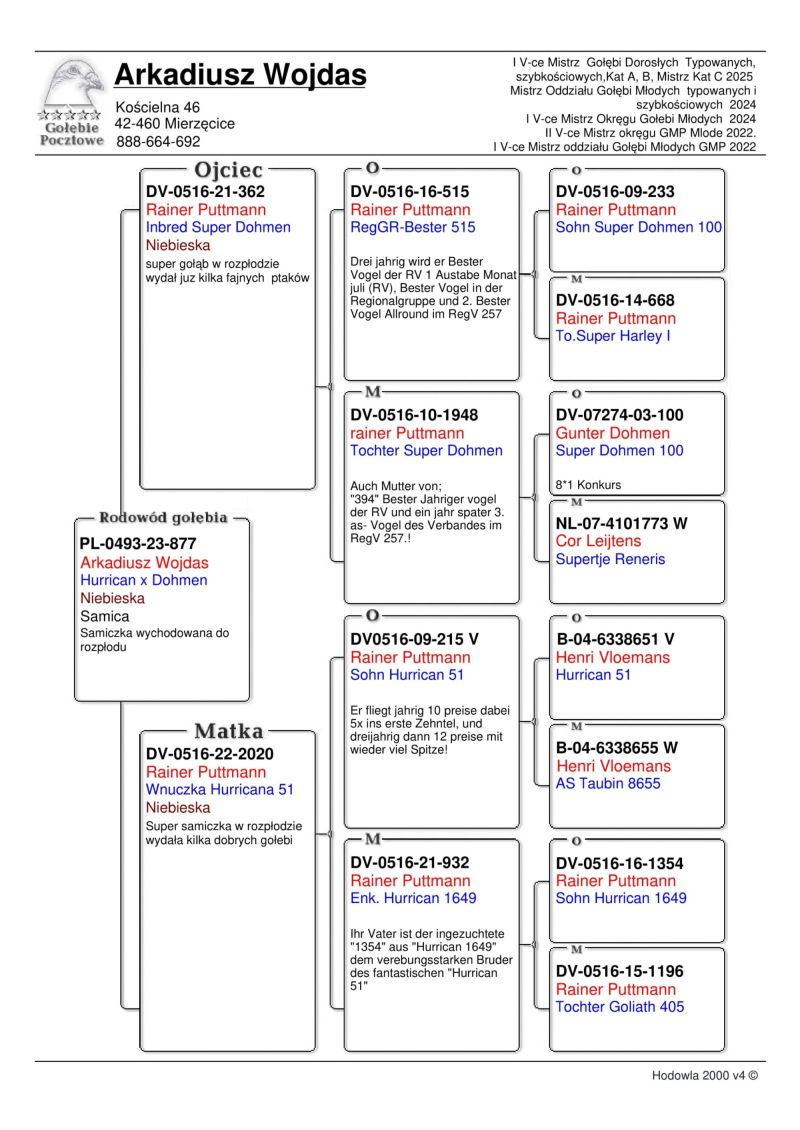 PL-0493-23-877 oryg. Arkadiusz Wojdas - Inbred Super Dohmen x Wnuczka Hurricana 51