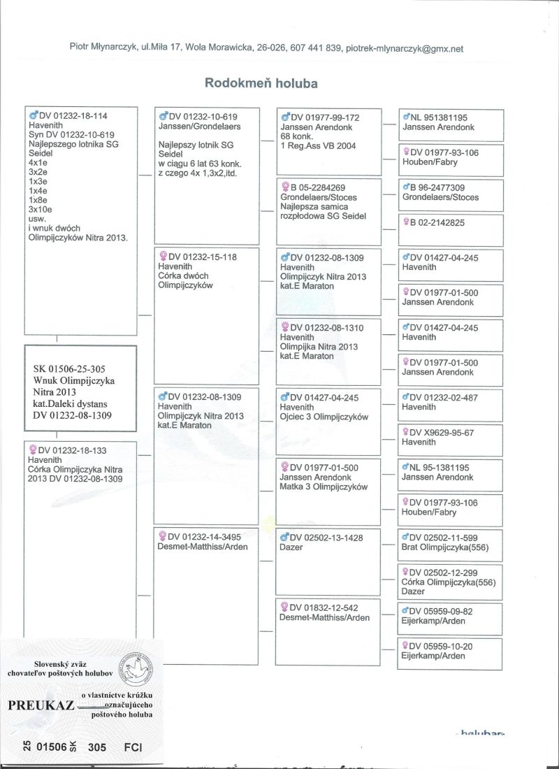 Havenith ,gołąb dalekodystansowy.Wnuk (wnuczka) Olimpijczyka Nitra 2013 DV 01232-08-1309 . Rodzina Seidel posiada siedmiu Olimpijczyków w kategorii daleki dystans, m.in. DV 01232-15-306 Olimpijka z Oradea 2022, pierwszy gołąb niemiec i 17 świata. Gołąbki zaszczepione msv i odrobaczone. Transport gołębi kurierem ,odbiór osobisty albo Nedziela na wystawie w Katowicach.
