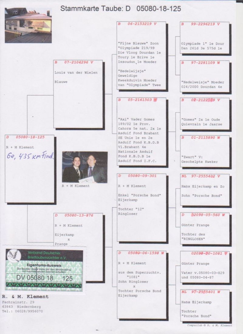 Oryginalny gołąb z Hodowli R+M Klement. Więcej informacji w rodowodzie oraz pod telefonem: 004915143604121 tez WhatsApp (Hodowca mówi po Polsku). Wysylka odbedzie sie z Polski(lub odbiór na Wystawie w Katowicach 9-11 stycznia), koszt wysylki od 100zl, bedzie ustalona indywidualnie...Prosze licytowac w 100% pewnosci zakupu!!!