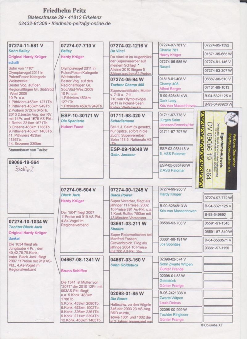 Oryginalny gołąb z Hodowli Peitz 100% Hardy Krüger. Więcej informacji w rodowodzie oraz pod telefonem: 004915143604121 tez WhatsApp (Hodowca mówi po Polsku). Wysylka odbedzie sie z Polski(lub odbiór na Wystawie w Katowicach 9-11 stycznia), koszt wysylki od 100zl, bedzie ustalona indywidualnie...Prosze licytowac w 100% pewnosci zakupu!!!