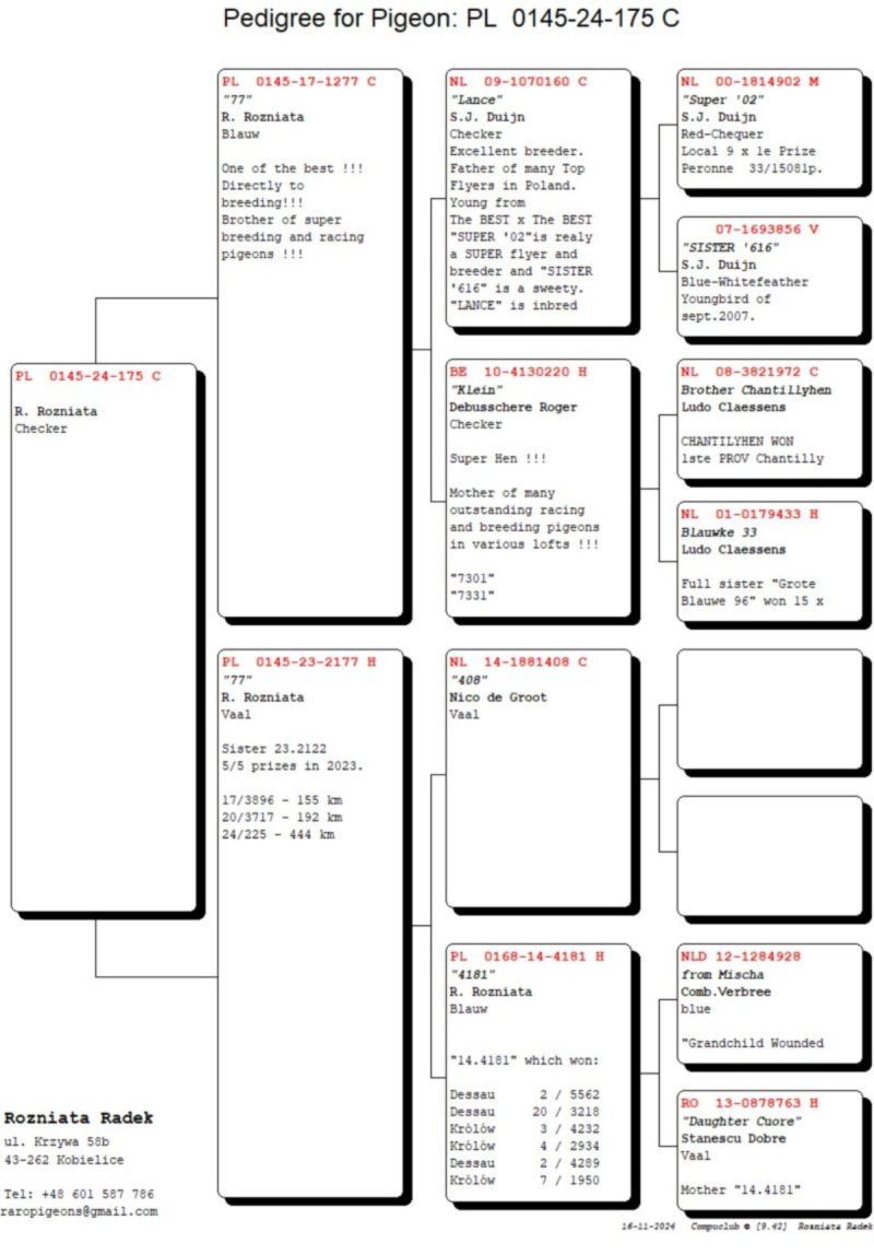 PL-0145-24-175 oryg. R. Rożniata wnuk 13 lot POLSKI wnuk złotej pary Lance x Klein