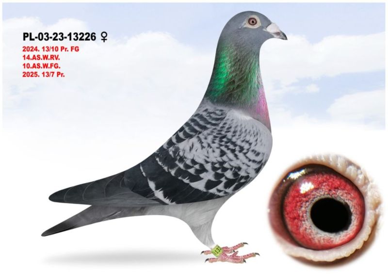 Prezentowane przeze mnie na aukcji gołąbki są zdrowe i w 100% przygotowane do dalszej hodowli. Szczegóły pochodzenia gołębia w rodowodzie. Moje wyniki 2025 na szczeblu oddziału. Gołębie dorosłe: Super Mistrzostwo Oddziału - I Vice Mistrz, 5 z 50- II Vice Mistrz, 5 z całości - II Vice Mistrz, Typowane - II Vice Mistrz, KAT. A - I Vice Mistrz, KAT. B - II Przodownik, KAT. C - I Vice Mistrz, KAT. M -I Vice Mistrz, KAT.D - I Vice Mistrz, KAT. GMP - II Vice Mistrz, KAT. ROCZNE - I Vice Mistrz, KAT. ROCZNE COEFF - I Vice Mistrz. Transport prywatnym kurierem kwota ok 150zł pokrywa kupujący. Istnieje również inna forma dostarczenia gołąbka która będzie ustalana indywidualnie z kupującym. Możliwy również odbiór osobisty lub na wystawie Ogólnopolskiej. Więcej informacji na temat gołębi i transportu pod nr tel. 663-127-528