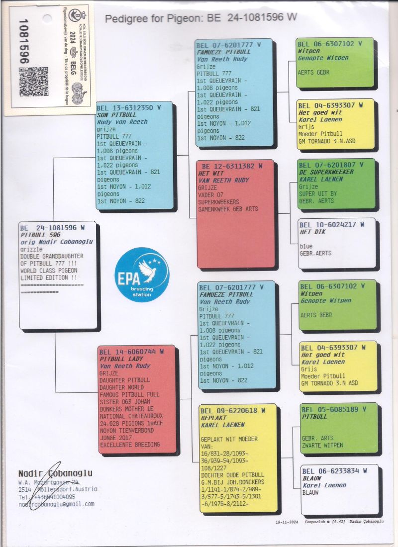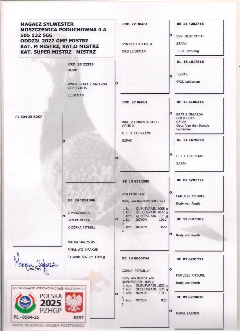 Oryginalny gołąb z hodowli Sylwestra Magacza. Szczegóły pochodzenia w rodowodzie. Więcej informacji pod nr tel.: 505132566