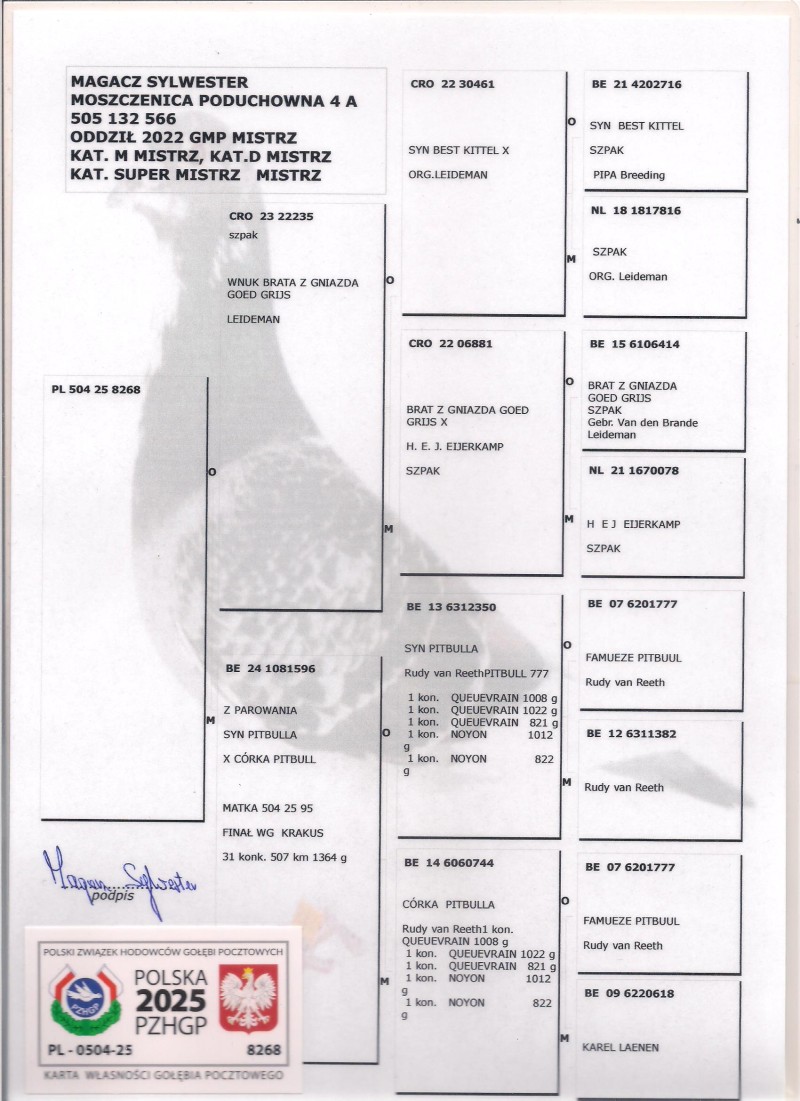 Oryginalny gołąb z hodowli Sylwestra Magacza. Szczegóły pochodzenia w rodowodzie. Więcej informacji pod nr tel.: 505132566