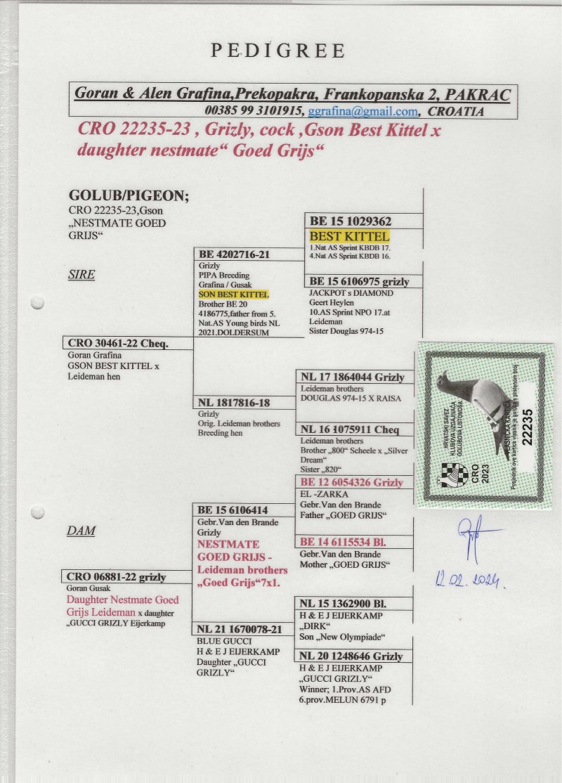 PL-0504-25-8253 - Linia gołębi GOED GRIJS