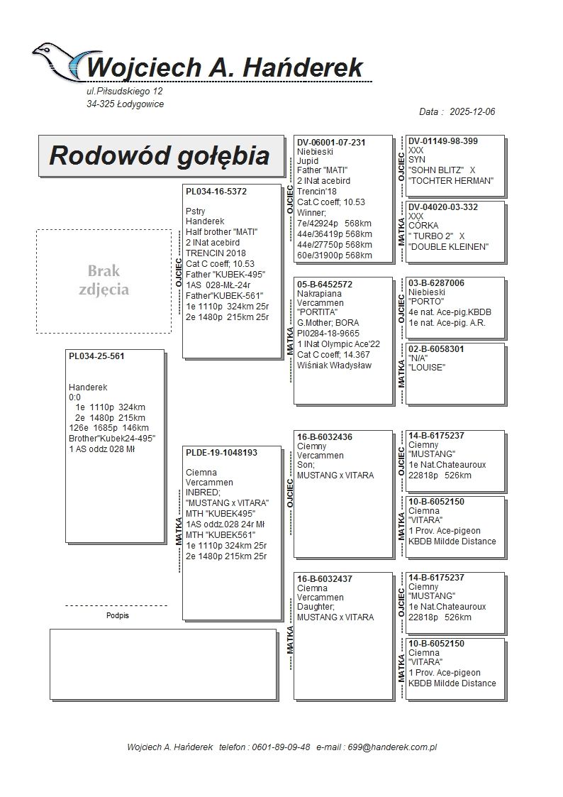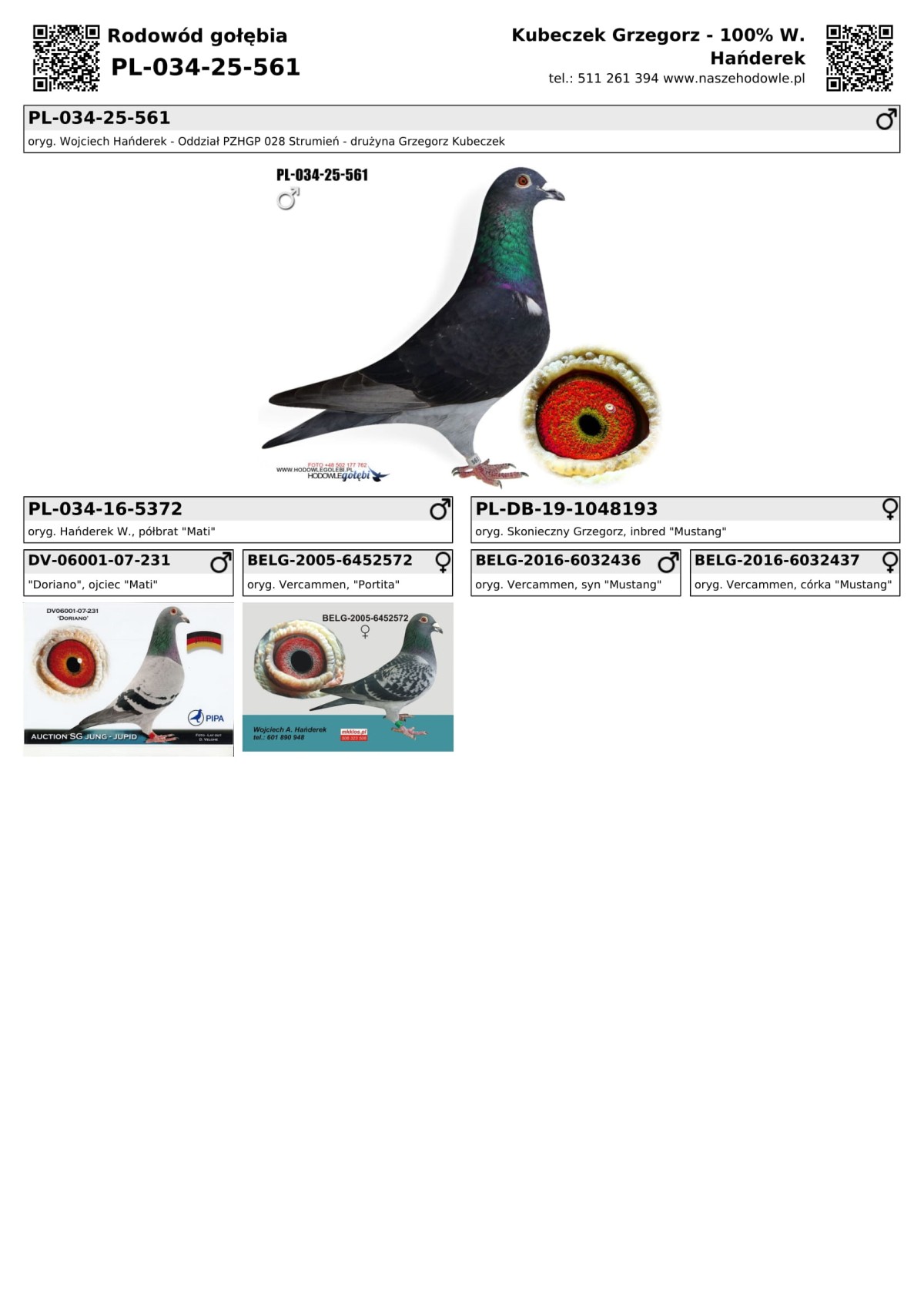 oryg. Wojciech Hańderek - Oddział PZHGP 028 Strumień - drużyna Grzegorz Kubeczek Gołąb lotowany w oddziale 028 Strumień w drużynie: Grzegorz Kubeczek. Wyniki gołębi na rodowodach. Szczegóły pochodzenia w rodowodzie i załączonych materiałach. Więcej informacji pod nr tel.: 511 261 394 (preferowany odbiór na Wystawie Ogólnopolskiej).