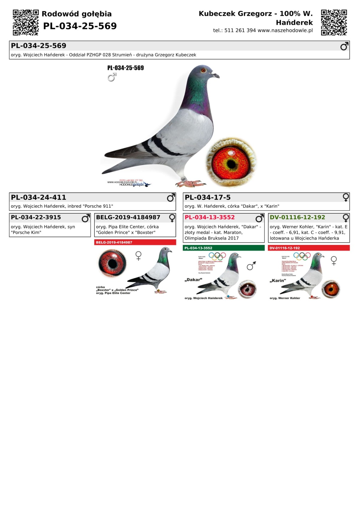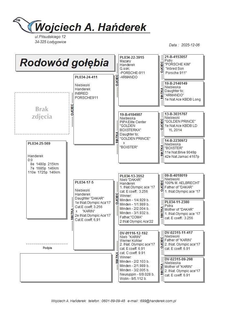 oryg. Wojciech Hańderek - Oddział PZHGP 028 Strumień - drużyna Grzegorz Kubeczek Gołąb lotowany w oddziale 028 Strumień w drużynie: Grzegorz Kubeczek. Wyniki gołębi na rodowodach. Szczegóły pochodzenia w rodowodzie i załączonych materiałach. Więcej informacji pod nr tel.: 511 261 394 (preferowany odbiór na Wystawie Ogólnopolskiej).