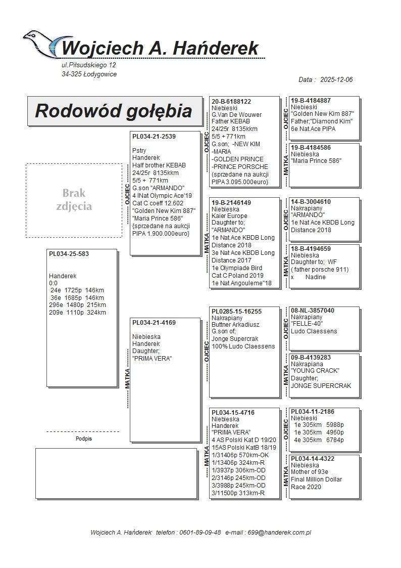 oryg. Wojciech Hańderek - Oddział PZHGP 028 Strumień - drużyna Grzegorz Kubeczek Gołąb lotowany w oddziale 028 Strumień w drużynie: Grzegorz Kubeczek. Wyniki gołębi na rodowodach. Szczegóły pochodzenia w rodowodzie i załączonych materiałach. Więcej informacji pod nr tel.: 511 261 394 (preferowany odbiór na Wystawie Ogólnopolskiej).
