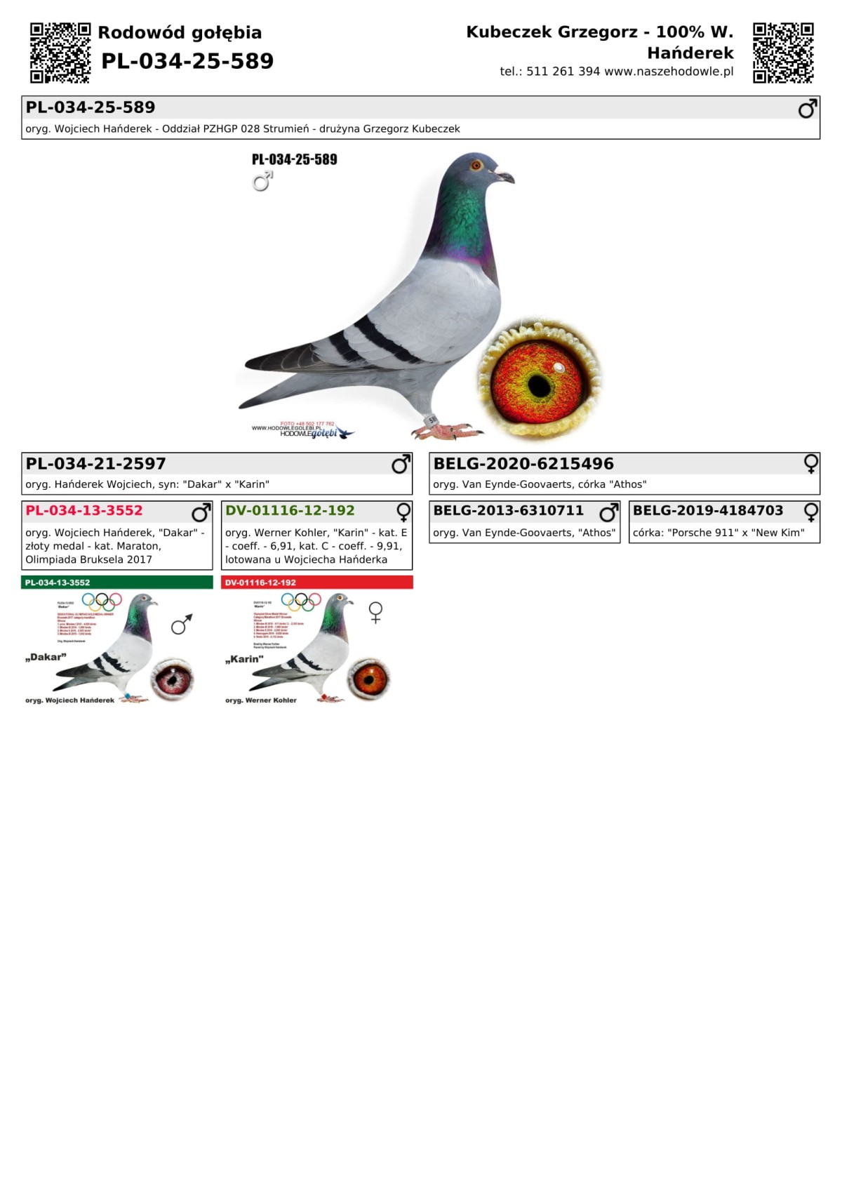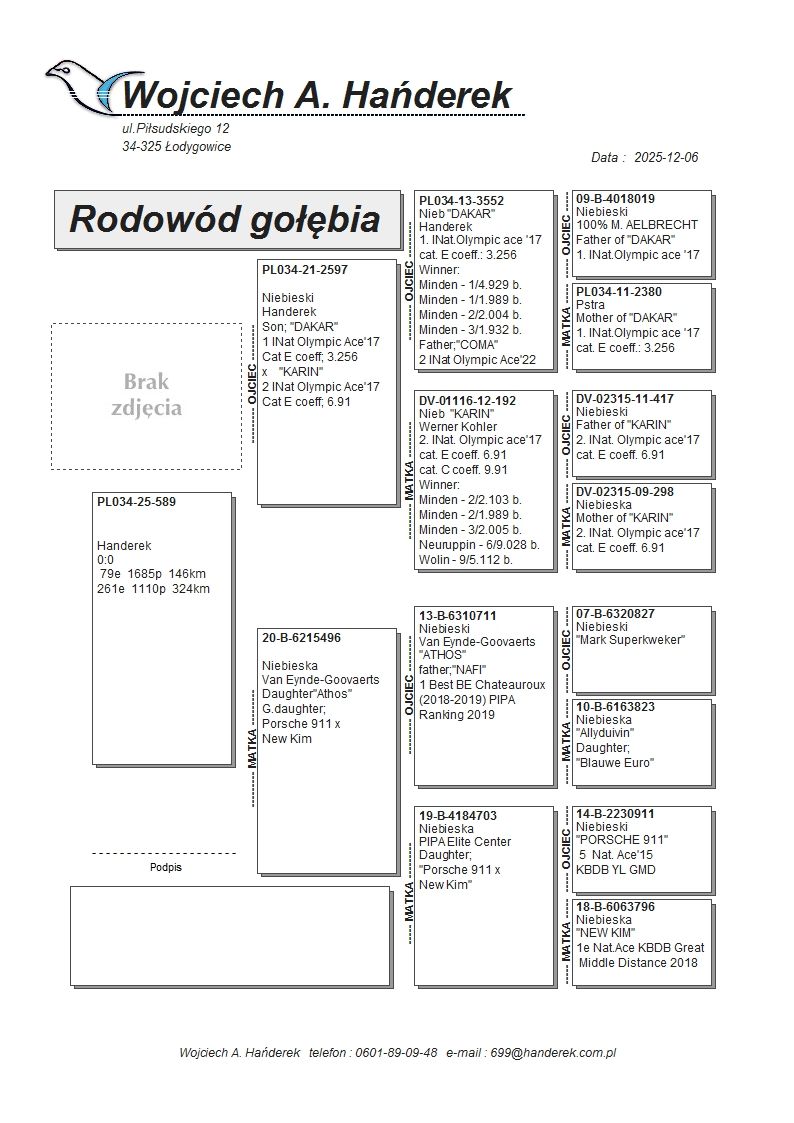 oryg. Wojciech Hańderek - Oddział PZHGP 028 Strumień - drużyna Grzegorz Kubeczek Gołąb lotowany w oddziale 028 Strumień w drużynie: Grzegorz Kubeczek. Wyniki gołębi na rodowodach. Szczegóły pochodzenia w rodowodzie i załączonych materiałach. Więcej informacji pod nr tel.: 511 261 394 (preferowany odbiór na Wystawie Ogólnopolskiej).