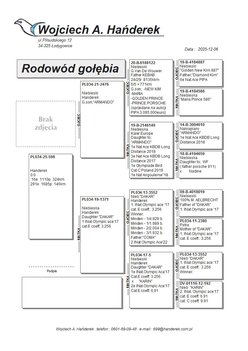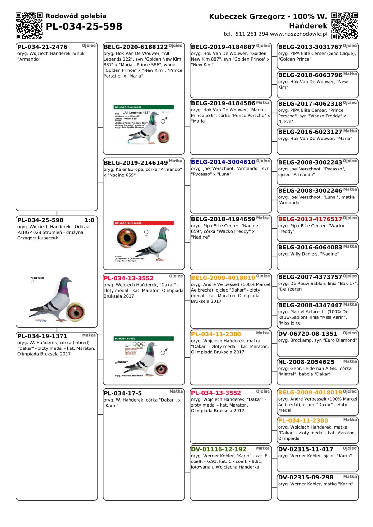 oryg. Wojciech Hańderek - Oddział PZHGP 028 Strumień - drużyna Grzegorz Kubeczek Gołąb lotowany w oddziale 028 Strumień w drużynie: Grzegorz Kubeczek. Wyniki gołębi na rodowodach. Szczegóły pochodzenia w rodowodzie i załączonych materiałach. Więcej informacji pod nr tel.: 511 261 394 (preferowany odbiór na Wystawie Ogólnopolskieju).
