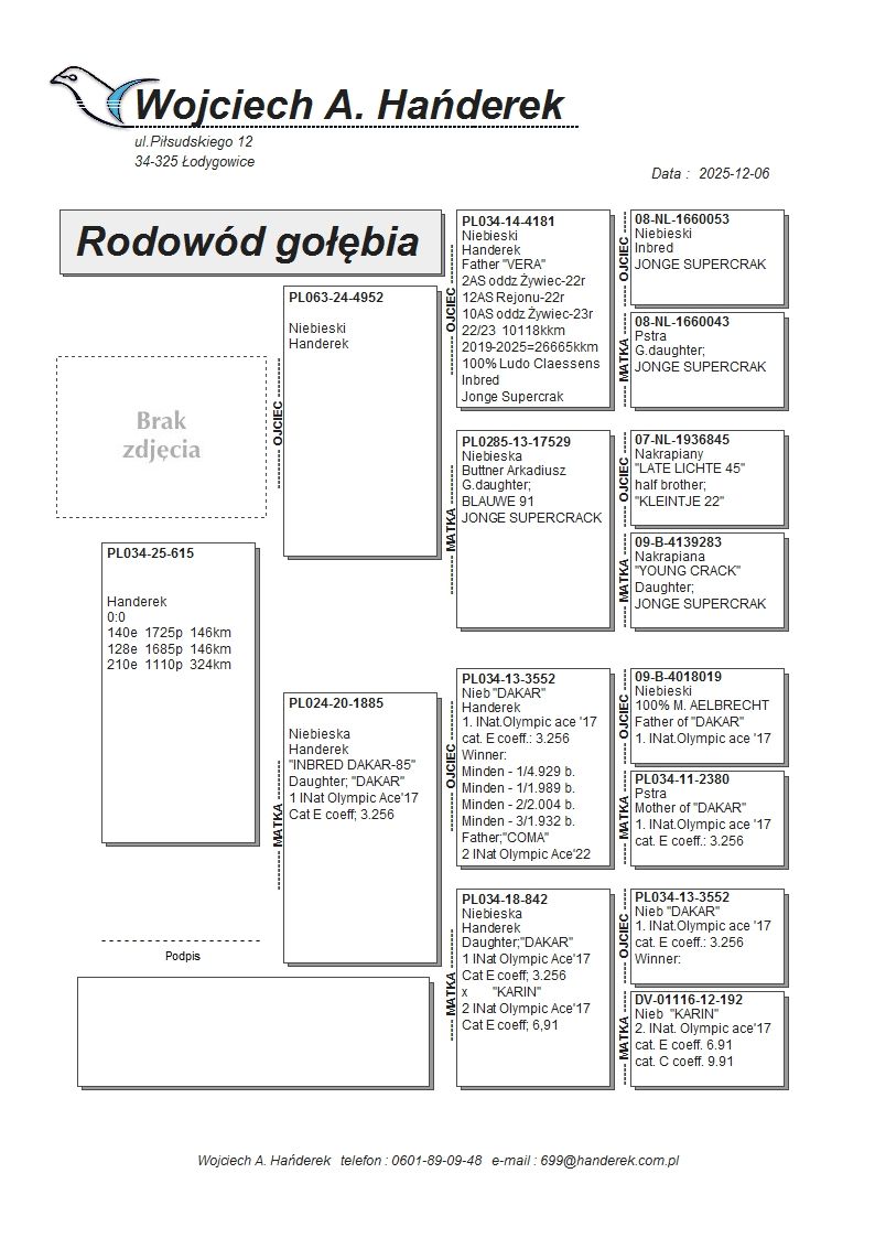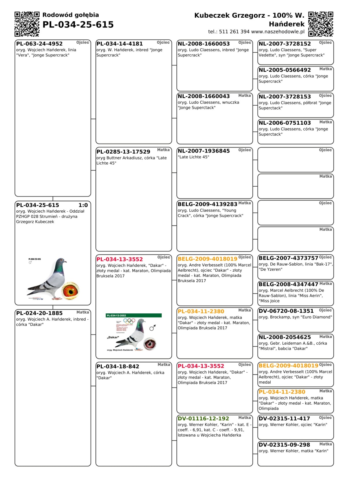 oryg. Wojciech Hańderek - Oddział PZHGP 028 Strumień - drużyna Grzegorz Kubeczek Gołąb lotowany w oddziale 028 Strumień w drużynie: Grzegorz Kubeczek. Wyniki gołębi na rodowodach. Szczegóły pochodzenia w rodowodzie i załączonych materiałach. Więcej informacji pod nr tel.: 511 261 394 (preferowany odbiór na Wystawie Ogólnopolskiej).