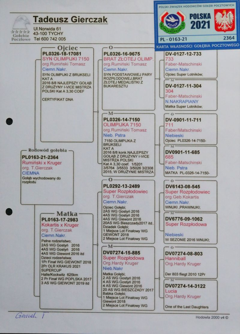 Oryginalny gołąb z hodowli - Tadeusz Gierczak. Więcej informacji w rodowodzie oraz pod numerem telefonu: 721 836 718