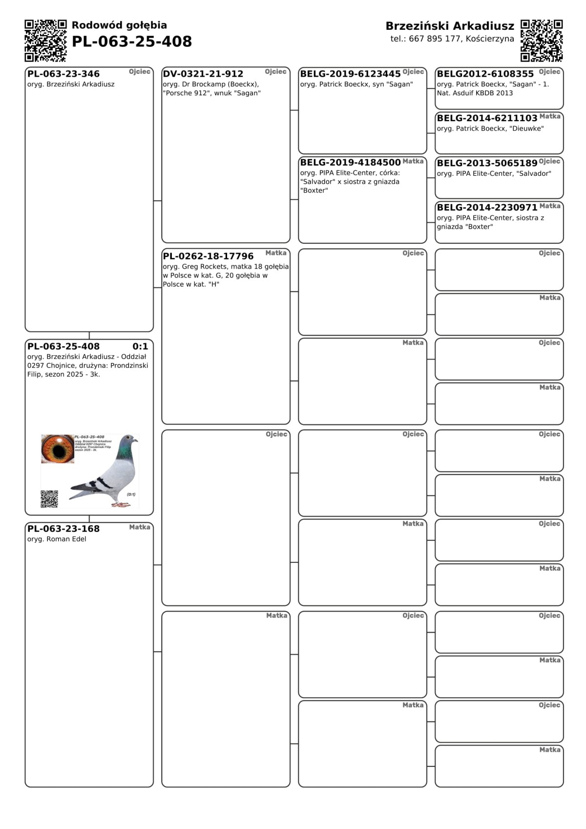 PLGP oryg. Brzeziński Arkadiusz - Oddział 0297 Chojnice, drużyna: Prondzinski Filip, sezon 2025 - 3k. Gołąb był lotowany w sezonie 2025 w Oddziale PZHGP 0297 Chojnice w drużynie Filip Prondzinski w ramach Polskiej Ligii Gołębi Pocztowych. Wyniki za poszczególne loty dostępne są w tabeli wyników. Zapewniamy transport gołębi w cenie: od 1 do 6 szt. - 150 PLN i od 7 do 12 szt. 200 PLN. Gołębia można również odebrać osobiście w Tucholi, Chojnicach lub na Wystawie Ogólnopolskiej w Katowicach. Więcej informacji u kol. Filipa Prondzinskiego pod nr tel.: 606 670 868.