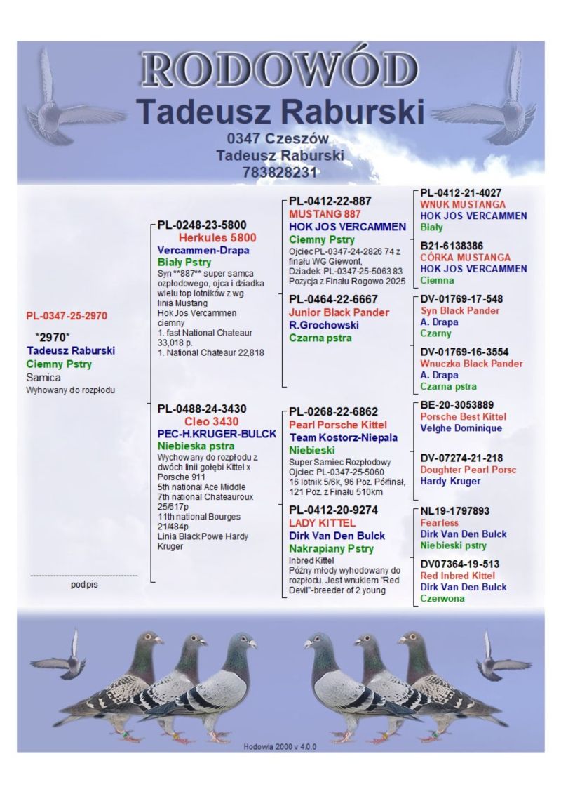 Hodowla skupiona w lotach gołębi na wspólnych gołębnikach z wieloma sukcesami. Zaprasza Państwa do licytacji wartościowego materiału do dalszej hodowli. Proponowany gołąb to linia moich dwóch bazowych par rozpłodowych, wielu kuzynów osiąga sukcesy na wspólnych gołębnikach. Więcej informacji w rodowodzie oraz pod nr. tel. WYSYŁKA PRYWATNYM KURIEREM LUB ODBIÓR OSOBISTY, LUB ODBIÓR NA WYSTAWIE OGÓLNOPOLSKIEJ