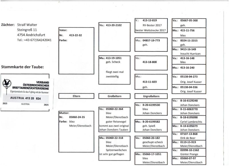 AUSTRIA-413-25-824-CHATO - OLR Talent Quatro Šternberk 2025 - 87 gołąb z Finału 510 km - FCI WORLD CHAMPION 2019
