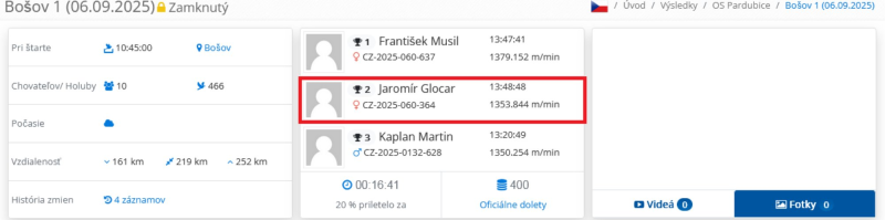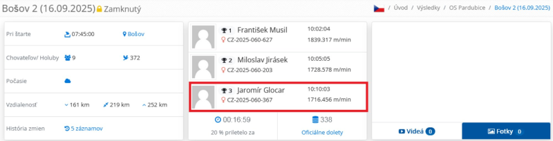 Płeć: młody gołąb Hodowca - rasa: JAROMIR GLOCAR Zakończenie: 5.01.2026 godz. 20:06