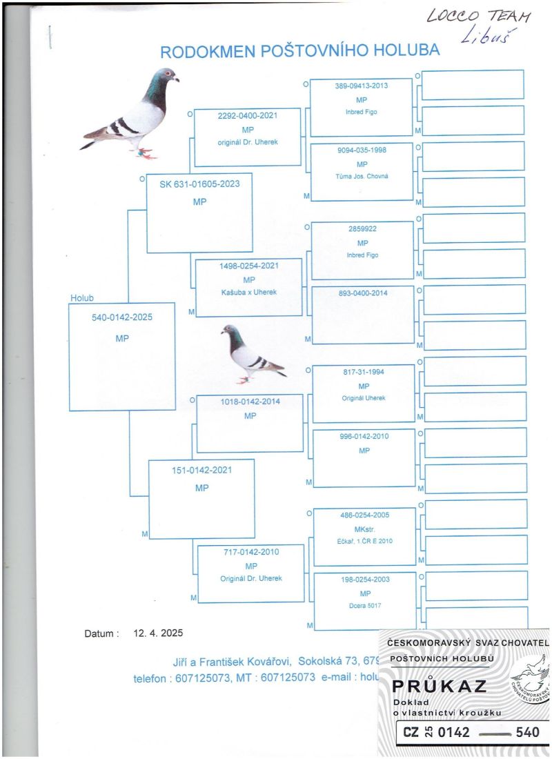 Płeć: młody gołąb Hodowca - rasa: LOCCO TEAM Zakończenie: 5.01.2026 godz. 20:20