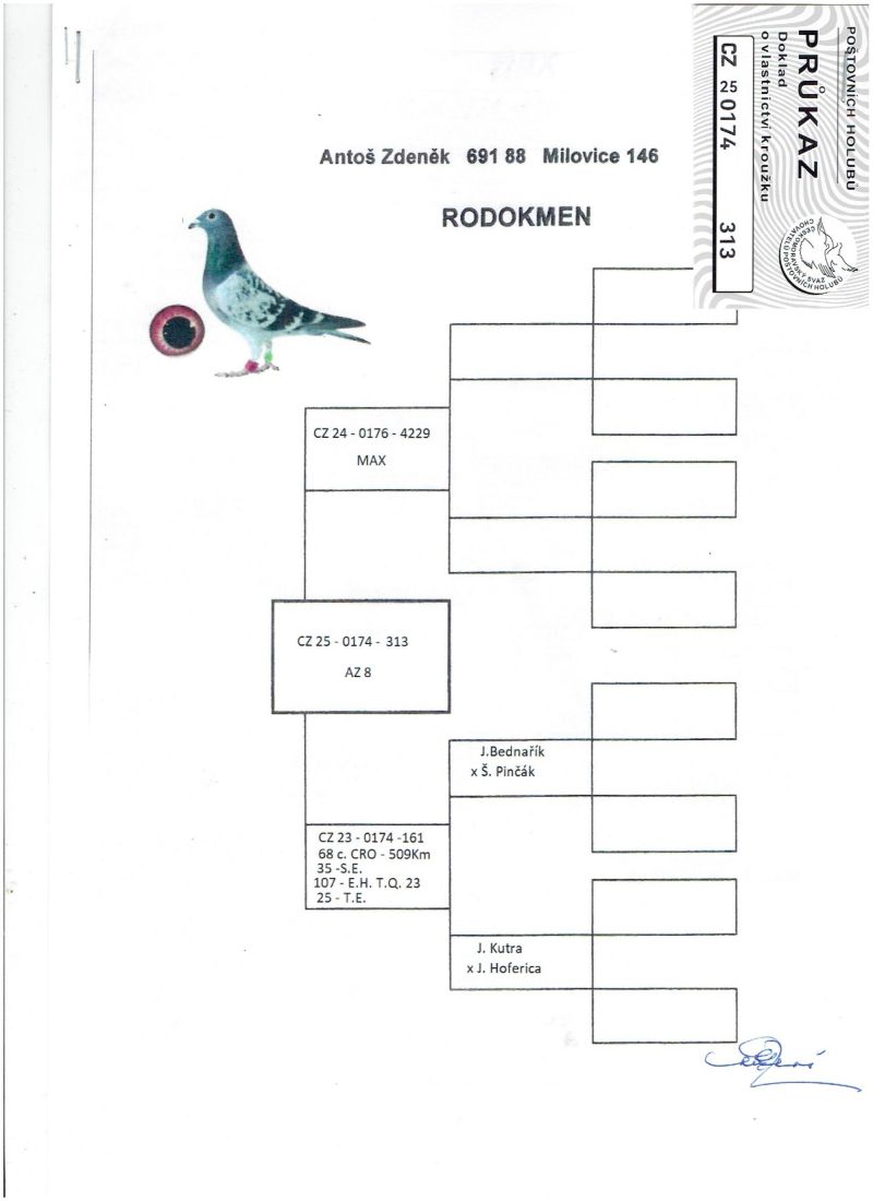 Płeć: młody gołąb Hodowca - rasa: ANTOS ZDENEK Zakończenie: 5.01.2026 godz. 20:22