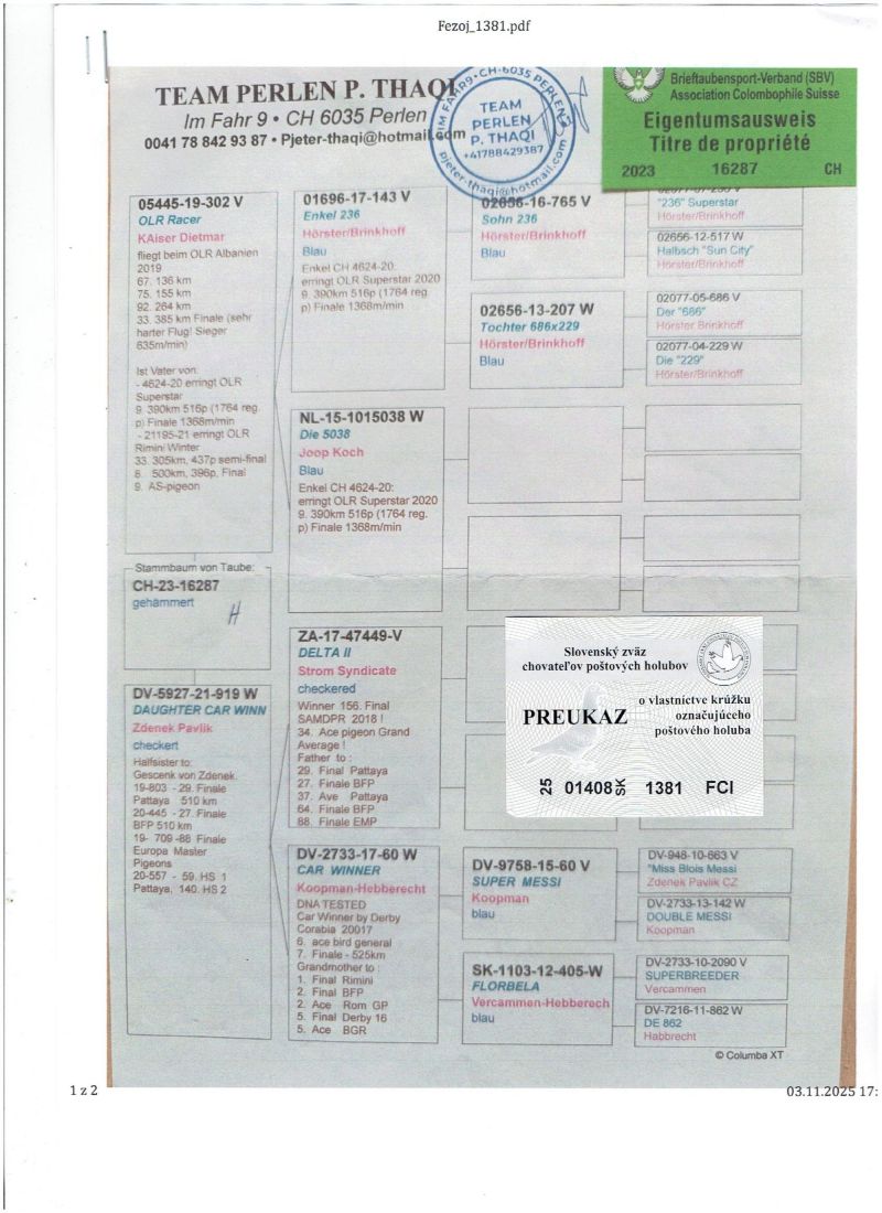 Gołąb z jednego z najbardziej wymagających Wspólnych Gołębników w Europie przez co gołębie są mocno wyselekcjonowane co pokazuje krótki filmik z prezentacją każdego gołębia. Po zakupie istnieje opcja odbioru na Wystawie Ogolnopolskiej w Katowicach w dniu 10.01.2026 ( Wpłata na konto po zakonczonej aukcji za golębia ), lub dostawa na podany adres koszt 150 zł bez względu na ilość gołębi . Gołębie z tego gołębnika radzą sobie bardzo dobrze zarówno w lotach oddziałowych jak i WG.