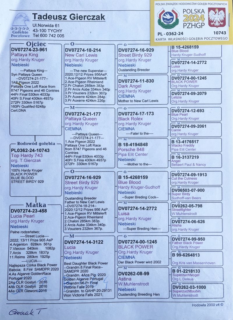 Płeć: młody gołąb Hodowca - rasa: oryg. Bernard Jakubowski Zakończenie: 5.01.2026 godz. 21:24
